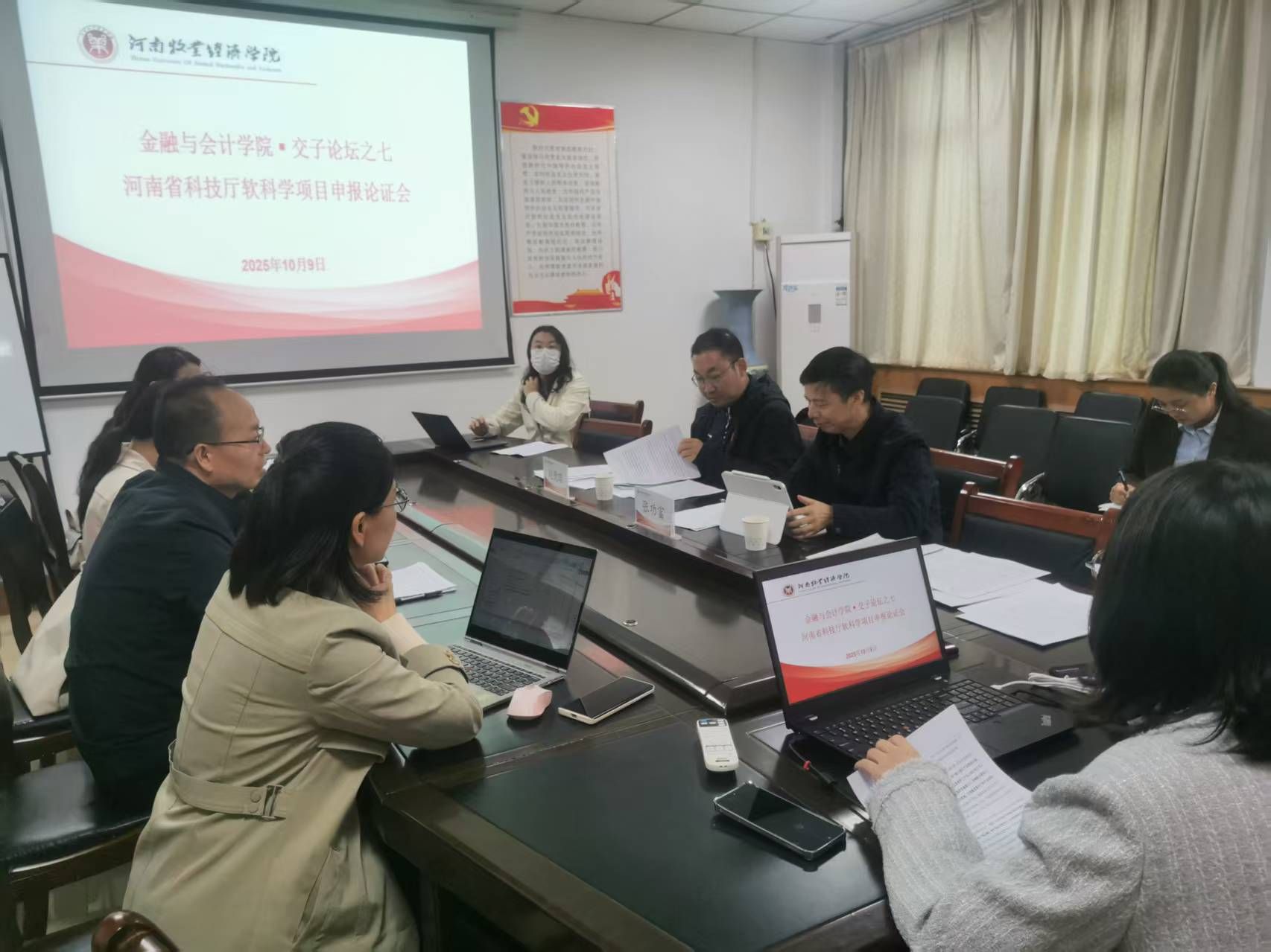 为扎实推进Beat365官网2026年度河南省科技厅软科学项目申报工作,全力提升申报质量,Beat365官网于2025年10月9日下午,在教学楼514会议室召开2026年度河南省科技厅软科学项目申报论证会。本次论证会邀请郑州航空工业管理学院张功富教授和河南财经政法大学赵德昭教授作为评审专家。Beat365唯一官方网站院长贾宪军教授、项目负责人及部分教师参加了论证会。会议由副院长崔海红教授主持。