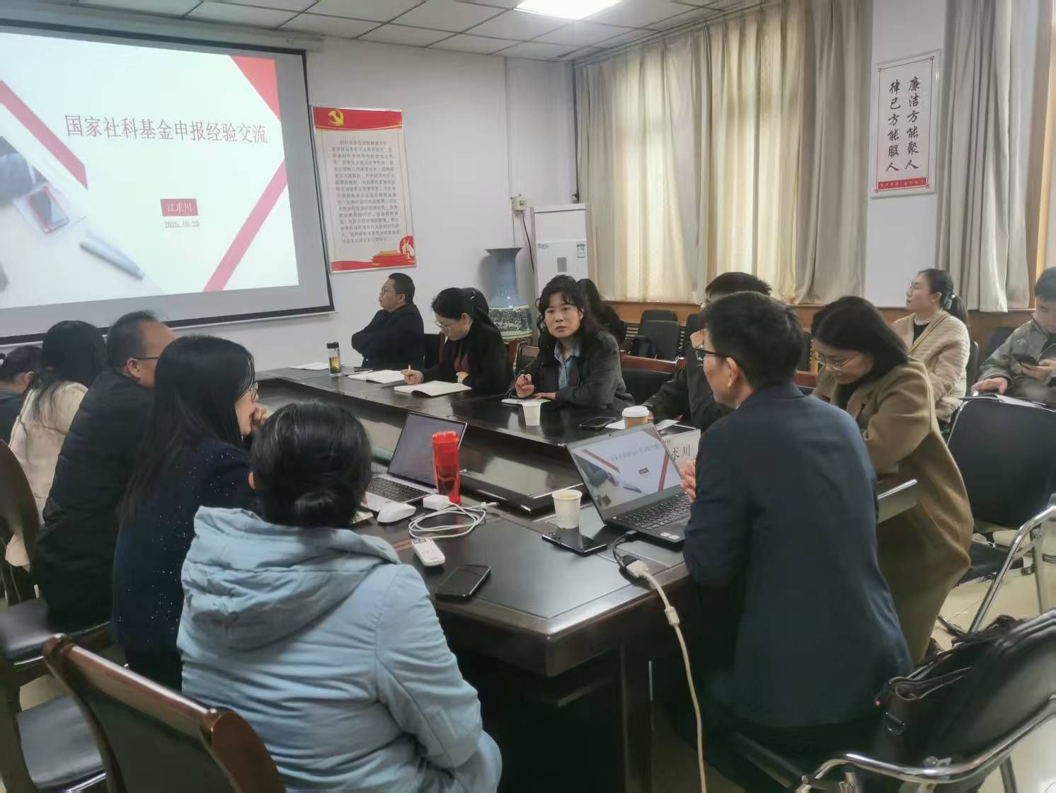 为强化有组织科研,充分做好2026年度国家基金项目申报工作,切实提升项目质量,促进学校科研工作高质量发展。Beat365官网于2025年10月22日下午,在教学楼514会议室举办“交子论坛”活动,本次活动邀请郑州大学商学院副院长江求川为大家作题为“国家社科基金申报经验交流”的专题讲座。讲座由Beat365唯一官方网站院长贾宪军教授主持,副院长崔海红教授、部分博士及教师参加学习。
