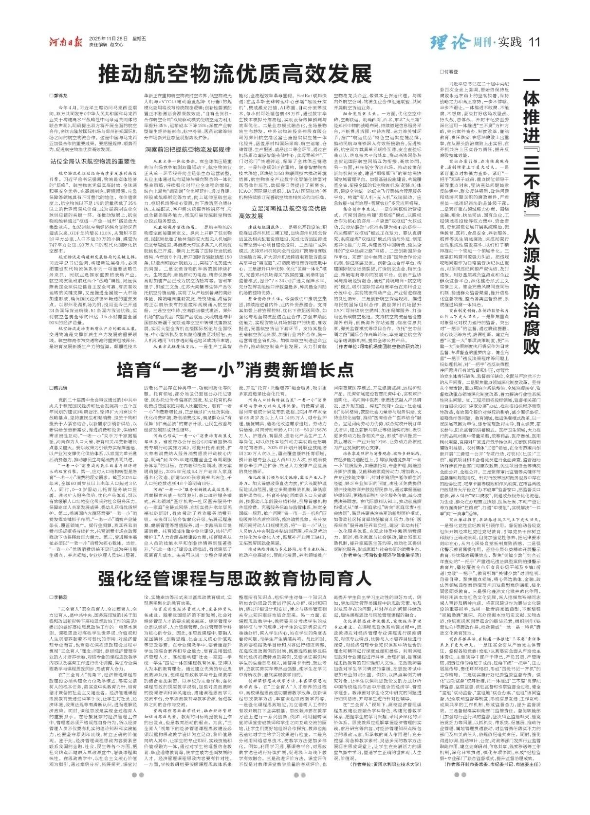 2025年11月28日,《河南日报》(理论版)刊发Beat365官网蔡兆瑞博士理论研究论文:《培育“一老一小”消费新增长点》。该文系2025年度河南省政府决策研究招标课题《加快培育“一老一小”消费新增长点研究》(2025JC049)的阶段性成果。