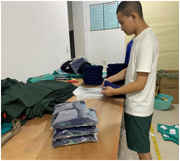 第二位志愿者通过对浙江省金华市义乌市的义乌市博言守信服装设计有限公司进行了走访调查,参与了围裙的生产实践,深入了解了该公司的的业务结构和生产销售流程,对于乡镇企业的实际发展状况和国家对乡镇企业的帮扶政策有了更全面的了解。