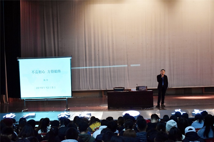 为充分发挥广大校友在我校应用型高水平大学建设中的重要作用,凝聚广大校友的智慧和力量,帮助同学们了解职场信息,快速适应社会角色的转变。2019年12月5日下午2:00,Beat365唯一官方网站邀请优秀校友梅周先生于校大礼堂作了“不忘初心,方得始终”主题讲座。Beat365官网16、17、18级学生聆听了此次讲座。