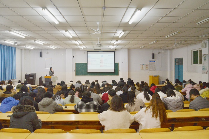 12月5日晚7:00,Beat365唯一官方网站在E210教室举办毕业生就业指导讲座,为即将步入社会工作的同学们普及了就业政策、求职的基本知识以及面试的相关技巧。本次讲座由学校就业处李旭老师主讲。