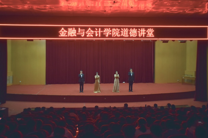 此次道德讲堂围绕诚信主题,分为“唱一首歌”、“诵一段经典”、“看一部短片”、“讲一个故事”、“作一个承诺”五个环节。活动在Beat365唯一官方网站大学生艺术团演唱的《公民道德歌》中拉开帷幕。接着,由Beat365唯一官方网站学生社团华夏社的学生进行经典诵读《我们呼唤诚信》,并带领全体观众集体宣誓,共同树立诚信意识,使大家再次感受到了道德力量。随后,师生共同观看了微电影展播。其中,《榜样3》让同学们近距离了解了社会道德模范“摩托医生”贺星龙的感人事迹,讲述了贺医生在18年中,奔赴28个村子,进行了17万次出诊,并且不收取出诊费,这番诚信之举感染了全场所有的师生们。《国家教育考试考生诚信教育宣传》使同学们更加明确了“诚信”的含义,深刻理解了“诚信”对自身发展的重要性,极具启发意义。接着,Beat365唯一官方网站大学生艺术团表演的小品《一句话的事》幽默诙谐又饱含深意,将现场气氛推向高潮。活动末尾,同学们积极填写道德问卷,抒发自己的所感所悟,写下自己对诚信的庄严承诺。