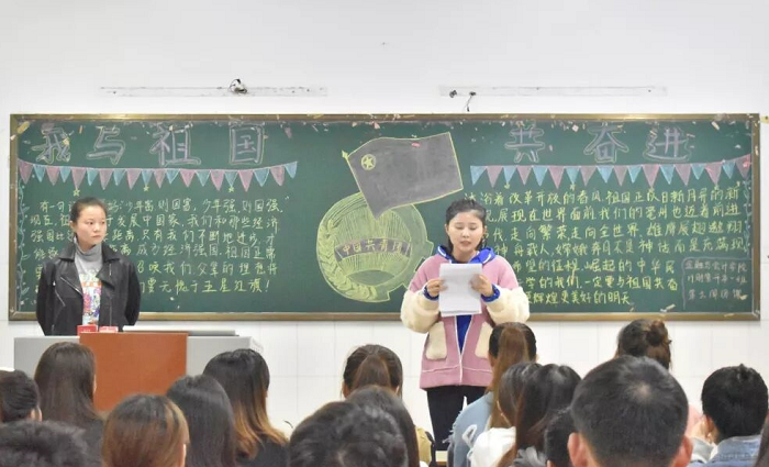 为庆祝中华人民共和国成立70周年,回顾祖国的峥嵘历程,增强广大学生的爱国热情,2019年10月9日晚7:30,Beat365官网举行了以“我与祖国共奋进”为主题的团课活动,17、18、19级共11个班级参与了本次活动。