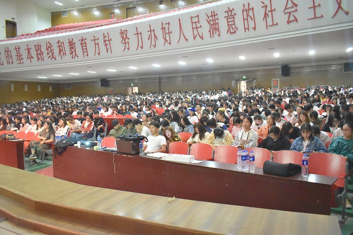讲座正式开始之前,董老师在台上指导同学们现场进行了游戏互动,充分调动了同学们的热情,活跃了现场气氛。董老师从大学生在校学习阶段的心理状况表现为大家讲解了作为大一新生应该如何适应大学生活,对大学生心理常出现问题的几个方面进行分析解读。此外,她通过视频和PPT介绍了校心理健康中心,告诫同学们要正确了解自己、接纳自己,正视问题,主动解决。随后,董老师向大家讲述了心理问题的含义和心理咨询的重要性,分析心理问题产生的深层原因,并就一些普遍的心理问题提出了一些解决方法。讲座中,董老师以视频的形式向同学们展示了心理健康知识的相关内容,通过分析心理问题典型案例,对学生日常生活适应、环境适应、学习适应、人际关系适应等方面进行了深刻的阐述。最后,董老师给予同学们建议,当遇到困难、有心理疑惑时,切忌羞于表达,应该大胆主动找同学老师倾诉宣泄,寻求帮助才是正确的做法。