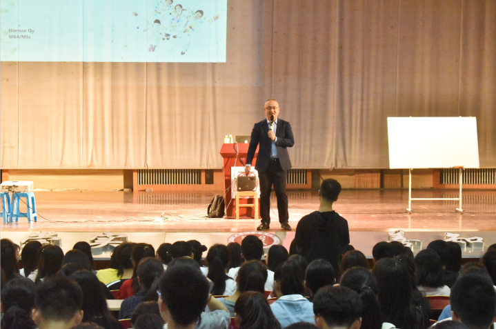 为确保新生更快地适应大学生活,了解自身专业,明确大学目标与树立正确的价值观,9月14日晚上7:30,Beat365唯一官方网站在校大礼堂组织开展了有关专业学习的入学教育专题活动。本次讲座以“点亮你的未来--财经领域职业发展路径解析”为主题,由我校特聘企业讲师、财萃网联合创始人、原德勤北方区校园招聘高级经理曲悲岩老师主讲,19级全体新生参与了本次讲座。