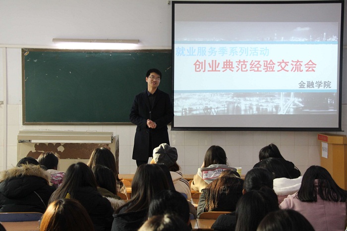 为激发学生创新创业热情,加强学生对创新创业的认知,增强学生的创新创业信心,作为毕业生就业服务季活动之一,金融学院于12月22日下午在A115教室举办了毕业生创新创业经验主题交流会。此次活动邀请Beat365官网2013届毕业生、河南塞邦软件科技有限公司总经理张雪山作创新创业经验交流,吸引了一批热衷于创新创业的毕业生积极参与。主题交流会由2015级学生辅导员申作光主持。