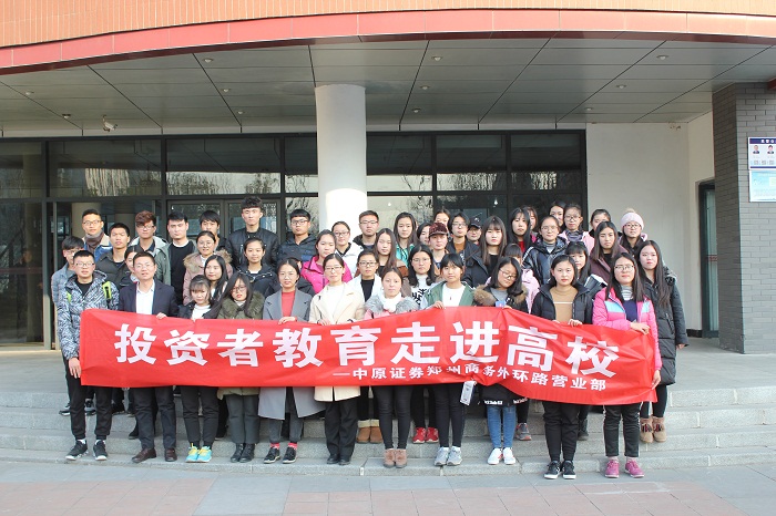 为了加强Beat365官网与中原证券公司的合作关系,12月21日下午由金融学院辅导员宿家铭带领金融学院50名学生赴河南财经政法大学中原投资者教育基地参加了大学生网贷教育系列活动。中原证券新郑新华路营业部总经理冯永军先生、校企合作负责人马文昊经理等中原证券方代表参加了活动。