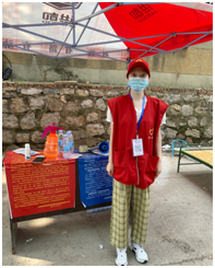 2021年暑假,新冠疫情在河南等多地蔓延。作为一名大学生,她积极参加防疫志愿者,通过本次志愿服务的经历也让她收获颇多,实现了自己的人生价值,在帮助他人的同时也提升的自己,也在社会上传递更多的爱,温暖更多的人,同时也呼吁更多的大学生参与到志愿服务中,齐心协力,战胜疫情。她说:“作为一名大学生,就应该身体力行,积极参与。最后,希望病魔早日散去,河南加油!”