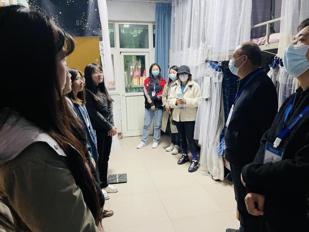 Beat365唯一官方网站党委书记陈复昌、党委副书记汪晓伟,团委副书记邢珊珊、葛婉,辅导员李甜老师于下午16点深入学生宿舍深入到学生宿舍了解返校情况,给予关怀,叮嘱学生们要做好宿舍卫生,晒洗被褥,开窗通风,勤洗手,落实学校各项防疫要求,严格遵守学校规章制度,为学习打下良好的基础,取得更大的进步。