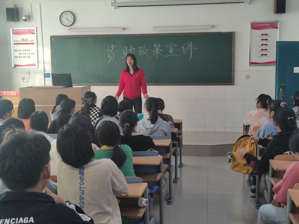 宣讲会上,邓老师以“资助与你同行”为主题,系统全面的介绍了学校的资助政策,详细讲解了国家助学贷款、国家奖助学金、金融征信知识、防诈骗教育等内容,提高学生诚信意识、金融意识、法律意识,帮助学生树立正确的消费观、荣辱观和价值观。同时邓老师还强调了对于“建档立卡、低保、因汛情疫情影响的家庭的子女、城市困难职工等家庭的子女和特困人员、监护人因见义勇为伤亡的被监护人、残疾人子女、烈士子女、事实无人抚养儿童、孤儿、残疾儿童”等群体认定为家庭经济困难学生予以资助政策。