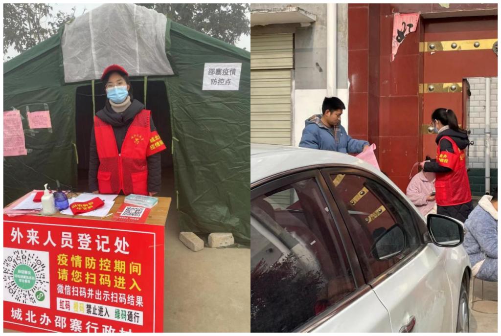 孙亚娟同学在假期报名了家乡周口川汇区邵寨村的疫情防控志愿者,希望能够作为志愿者为本次疫情贡献自己的一份力量,此次疫情的志愿工作主要是帮助搭帐篷,测体温,登记来往人员信息,去村里发疫情防控宣传单,帮助提高大家的疫情防控意识。孙亚娟同学在志愿活动中找到了自己的价值服务社会,传递爱心、传播文明,为社会的和谐发展贡献自己的力量。她相信大家一定可以战胜疫情!