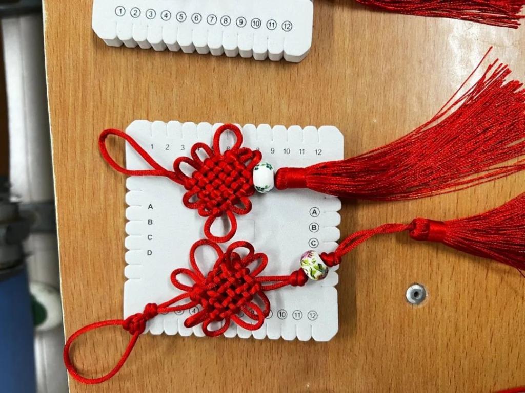 活动现场,大家在绘心工艺社团干事的介绍下认真学习中国结的历史和知识。一根根红色丝绳在指尖穿梭,一个个带着浓浓中国味的中国结诞生了。看着自己亲手编织而成的中国结,同学们感受到了传统文化带给大家的快乐。