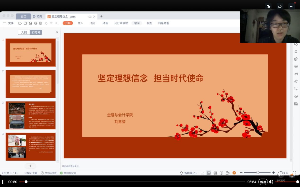 通过此次理想信念主题教育,2022级新生对理想信念的理解更加深入。在面对艰难险阻时,要秉持“舍我其谁挑重担,为观奇景上高山”的担当;崇尚“墨色苍茫看劲松,乱飞云渡仍从容”的定力;恪守“纸上得来终觉浅,绝知此事要躬行”的实干。怀揣着这份初心与信念,各位新同学终会披荆斩棘,走向梦想的彼岸!