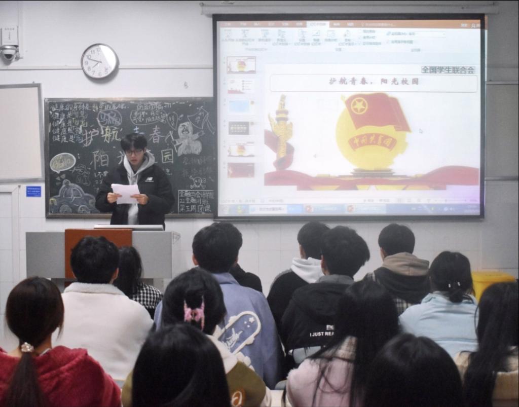 伴随着嘹亮的团歌声,各团支部组织的团课相继开展。各团支部组织同学认真学习了反诈、防患、禁毒、消防安全等相关知识,从财产安全、网路安全、交通安全、消防安全等多方面学习了各种防灾避险知识与注意事项,并对所见所闻的真实案例做出分析,让同学们更深入了解安全问题,增强自我防范意识和法治观念,同时各团支部呼吁大家要时刻防范生活中的安全隐患,自觉成为守护自我安全的第一责任人。
