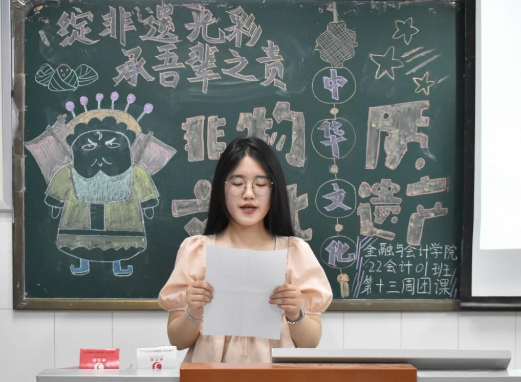 伴随着嘹亮的团歌声,各团支部组织的团课相继开展,在本次团课中,各团支部首先通过形式多样的学习方式使同学们了解了为什么要传承非遗文化,领略到了非遗文化的魅力以及保护非遗文化的重要性。接下来同学们不仅积极分享个人对非遗文化的认识,而且就如何保护、传承非物质文化遗产也有着独到的见解。