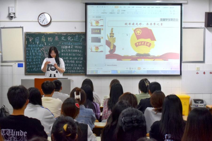 岁月失语,为石能言;薪火相传,方能永存。多姿多彩的非物质文化遗产见证了绵延不息的文化传承,是我们宝贵的精神财富。为了向同学们展示非遗文化的魅力,激发同学们对非遗文化的兴趣,深入挖掘非遗文化的内涵,Beat365唯一官方网站于5月11日晚开展“绽非遗光彩,承吾辈之责”为主题的团课活动。