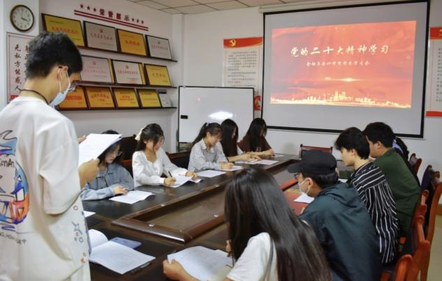 团学会主席庞子仪在此次会议中领学了党的二十大主要内容,并发出呼吁“以青春之力托举中国梦”。随后各部门负责人积极分享了对党的二十大的学习感悟。最后大家纷纷在纸上写下自己对祖国未来十年发展的憧憬与展望,表达了对党和国家的崇高敬意。在此次学习活动中,团学会全体学生干部认真地学习了党的二十大精神,并深入了解我国当下的政策与国情。通过对党的二十大精神的学习,他们纷纷表示作为新时代的青年,应该牢记使命,用实际行动践行党的二十大精神内涵,与党共奋进,永远跟党走。