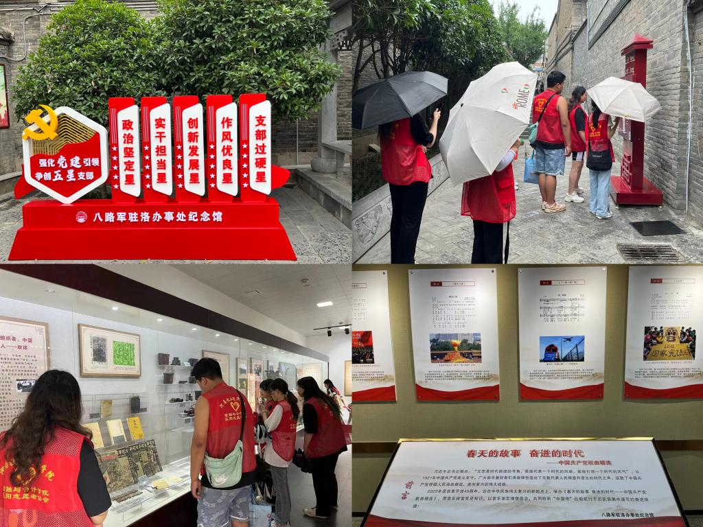 为更好地了解中国共产党的党史,坚定理想信念,传承红色精神,7月3日上午,Beat365唯一官方网站暑期非物质文化志愿者团在学生第二党支部书记葛婉和组织委员陈阳老师的带领下,共赴八路军驻洛办事处纪念馆和小浪底水利枢纽参观学习。