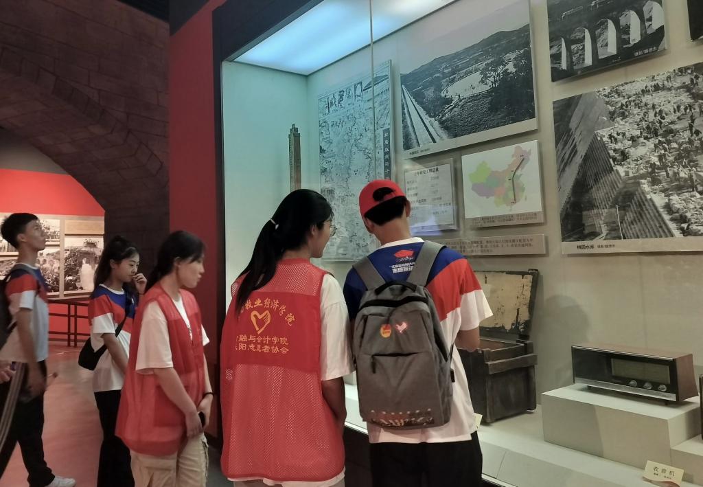 讲解之后,实践团又自行学习参观了纪念馆,深刻领会了“序厅”“千年旱魔,世代抗争”“红旗引领,创造奇迹”“英雄人民,太行丰碑”“山河巨变,实现梦想”“继往开来,精神永恒”六部分的精神含义,再次被当年10万大军战太行的场景所震撼。