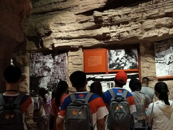 纪念馆以红色为基调,远远望去,似一条红飘带坐落在山间。实践团在讲解员的带领下,走过了515米长的展线,一幅幅惊心动魄的修渠画面,一个个随工地行走的“林红村”,一座座绳索捆脚防掉摔的“神工铺”……让大家真正感受到了那段荡气回肠的艰苦岁月。