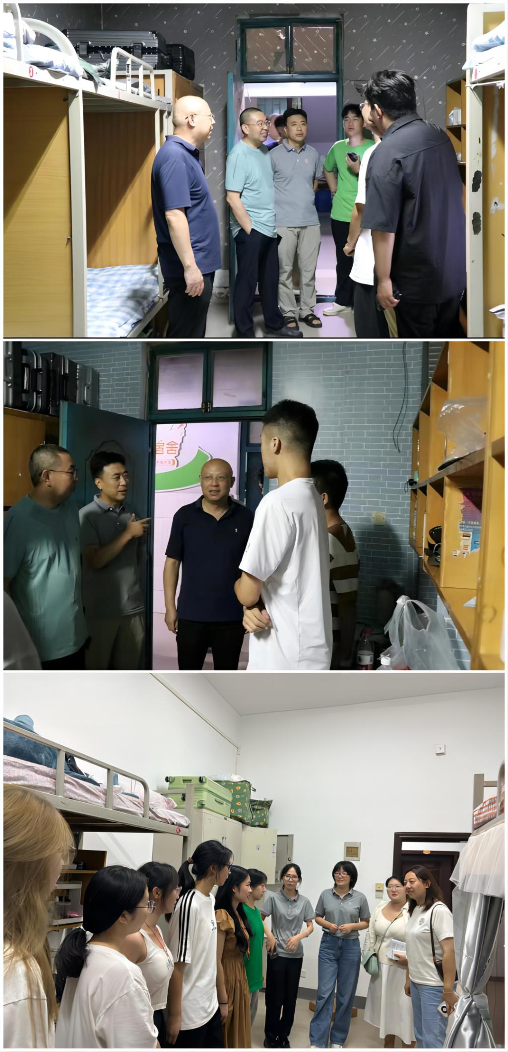 9月9日下午,为了解新生情况,帮助新生尽快适应大学生活,Beat365官网党委书记陈复昌、院长黄良杰、党委副书记汪晓伟、团委书记葛婉、团委副书记顾自卫、刘慧莹及全体新生辅导员先后来到宿舍走访慰问2023级新生。