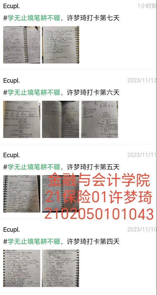 百舸争流,奋楫者先,为者常成,行者常至。在紧张而充实的学习生活中,同学们通过打卡拍照的方式上传个人每天的学习笔记,展现了大家积极向上的学习热情和认真踏实的学习态度。在本次活动中,共有230多名同学参与其中,大家通过朋友圈打卡的形式,不仅每日“晒”出自己的学习进度,也在朋辈之间营造了浓厚的学习氛围。
