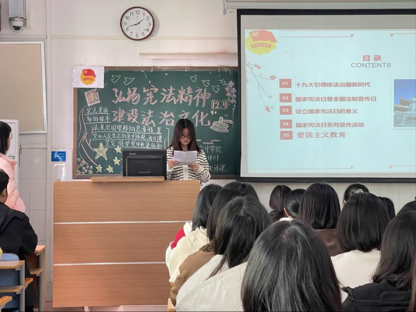 伴随着嘹亮的团歌声,各团支部的主题团课活动相继展开。首先,各团支书通过讲解宪法的地位和作用以及播放习近平法治思想相关视频,为同学们开展了本次团课。随后,各班演讲人为同学们讲解了宪法修订、更新以及补充的过程,强调了宪法在生活中的重要作用,宣传了宪法精神和习近平法治思想。最后,各班团支书组织班级进行小组讨论和感悟分享,在同学们激烈的讨论声中,此次团课告一段落。