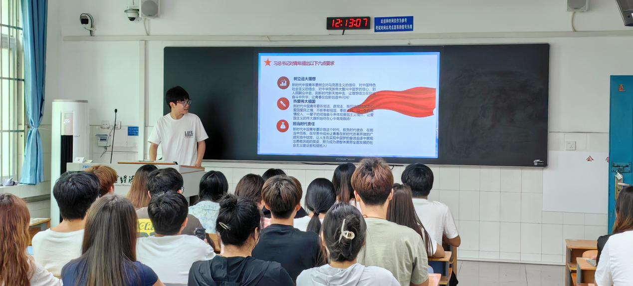会议伊始,先由团学会学生团委副书记梅新歌领学习近平总书记五四青年节对全国广大青年的寄语,并通过PPT回顾了党领导中国青年运动的光辉历程,阐释了“五四运动”的丰富内涵与时代意义,号召全体学生干部继承和发扬五四精神,坚定不移听党话、跟党走,努力掌握来自党的科学理论并在课后积极投身于实践。