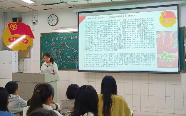 伴随着同学们嘹亮的团歌声,本次主题团课正式拉开帷幕。首先,主持人通过展示一系列图片与视频资料,帮助大家全面认识当前我国粮食安全的现状及面临的挑战,深入理解粮食安全的内涵。接着,学生代表上台发言,用自己的语言向同学们传达自己对粮食安全的理解。最后通过观看相关视频,同学们更加深刻理解粮食安全的内涵与意义。