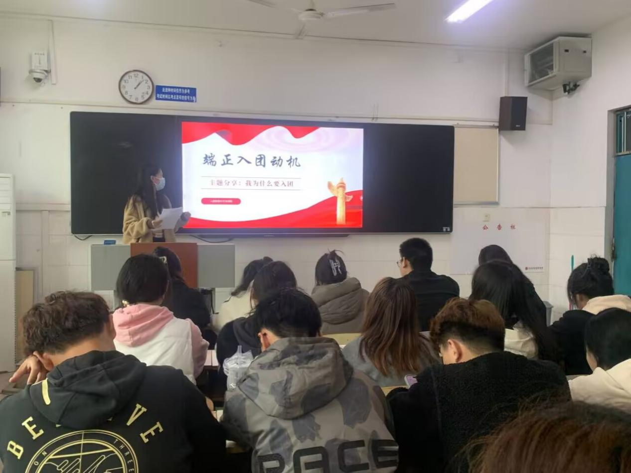 培训第二项:分批次安排入团积极分子进行线下团课培训,通过观看《我是延安人》《马克思是对的》《青课:社会主义核心价值观与青年》等视频,从而进一步深化同学们对共青团的认识。在培训学习过程中,各位同学踊跃发言,就“学习贯彻习近平新时代中国特色社会主义思想”“我为什么要入团”以及“阅读《习近平与大学生朋友们》后的感悟”分享自己的心得体会和看法,增强了文化素养和思想意识,切实深化了对团组织的认识和理解,从而更好地端正入团动机,坚定入团信念。