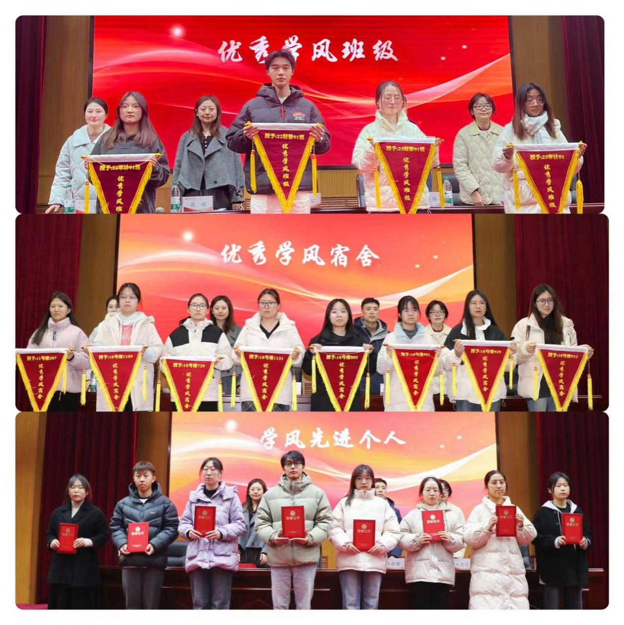 随后,优秀学风班级代表杨青颖分享了班级在营造良好学习氛围、开展学习互助活动等方面的经验与做法;优秀学风宿舍代表李昊云讲述了如何以宿舍为小单元,进行集体学习活动,充分发挥宿舍作用;学风先进个人仇若涵分享了自己在学习过程中的坚持与收获,为同学们提供了宝贵的学习方法借鉴。