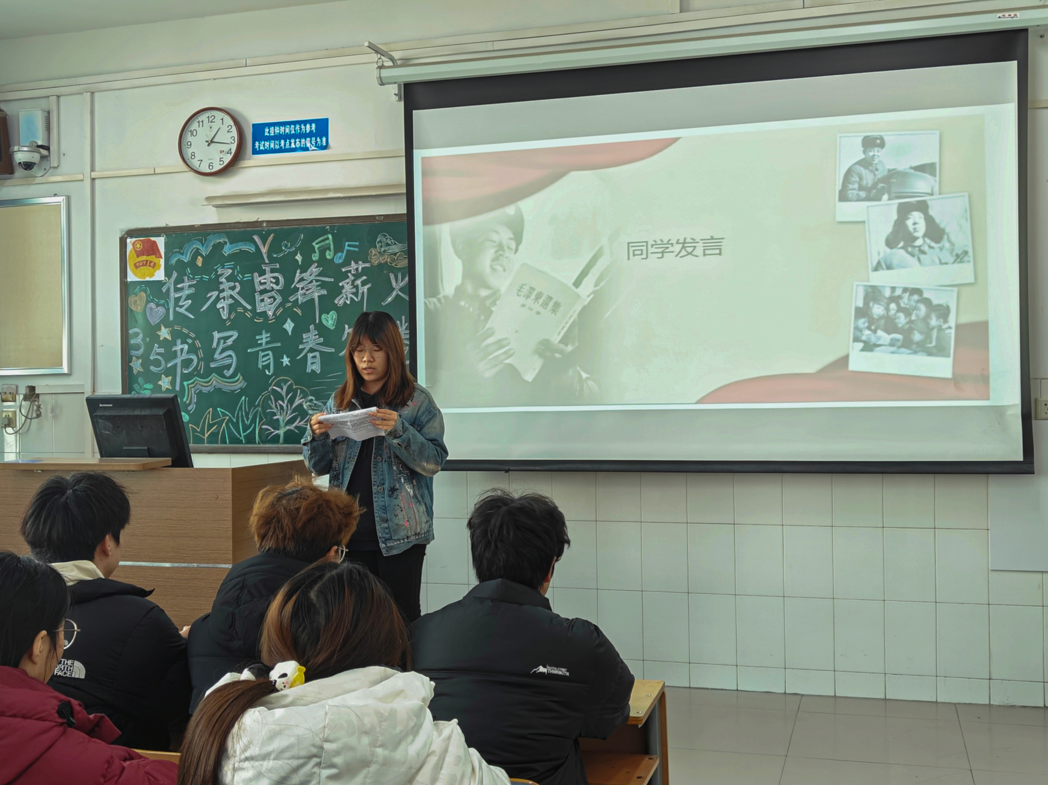 伴随着团歌响起,团课拉开帷幕。由主讲人带领大家回顾了雷锋同志短暂却光辉的一生,细致讲述了雷锋助人为乐、无私奉献的事迹,深刻解读雷锋精神的时代内涵。还联系“雷锋月”的起源和意义,呼吁同学们以实际行动传承雷锋精神,努力成为新时代雷锋精神的传播者和践行者。最后由学生代表上台发言,他结合自身实际情况,深入畅谈传承雷锋精神、书写青春答卷的理解,并鼓励同学们要像雷锋一样,坚守理想信念,勤奋学习专业知识,积极参与实践活动,努力成长为有理想、敢担当、能吃苦、肯奋斗的新时代优秀青年。