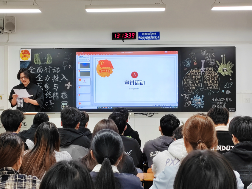 伴随着嘹亮的团歌声,团课活动正式开始,首先,主讲人通过详实的数据和案例,阐述我国水资源现状,如人均水资源量少、时空分布不均等问题,让同学们直观认识到水安全面临的严峻挑战。其次,深入剖析水利高质量发展在防洪、供水、生态修复等方面的关键作用,结合三峡大坝、南水北调等大型水利工程,讲解其在调控水资源、保障民生中的巨大效益。最后,组织同学们分组讨论日常生活中的节水举措及如何向社会宣传水安全知识。