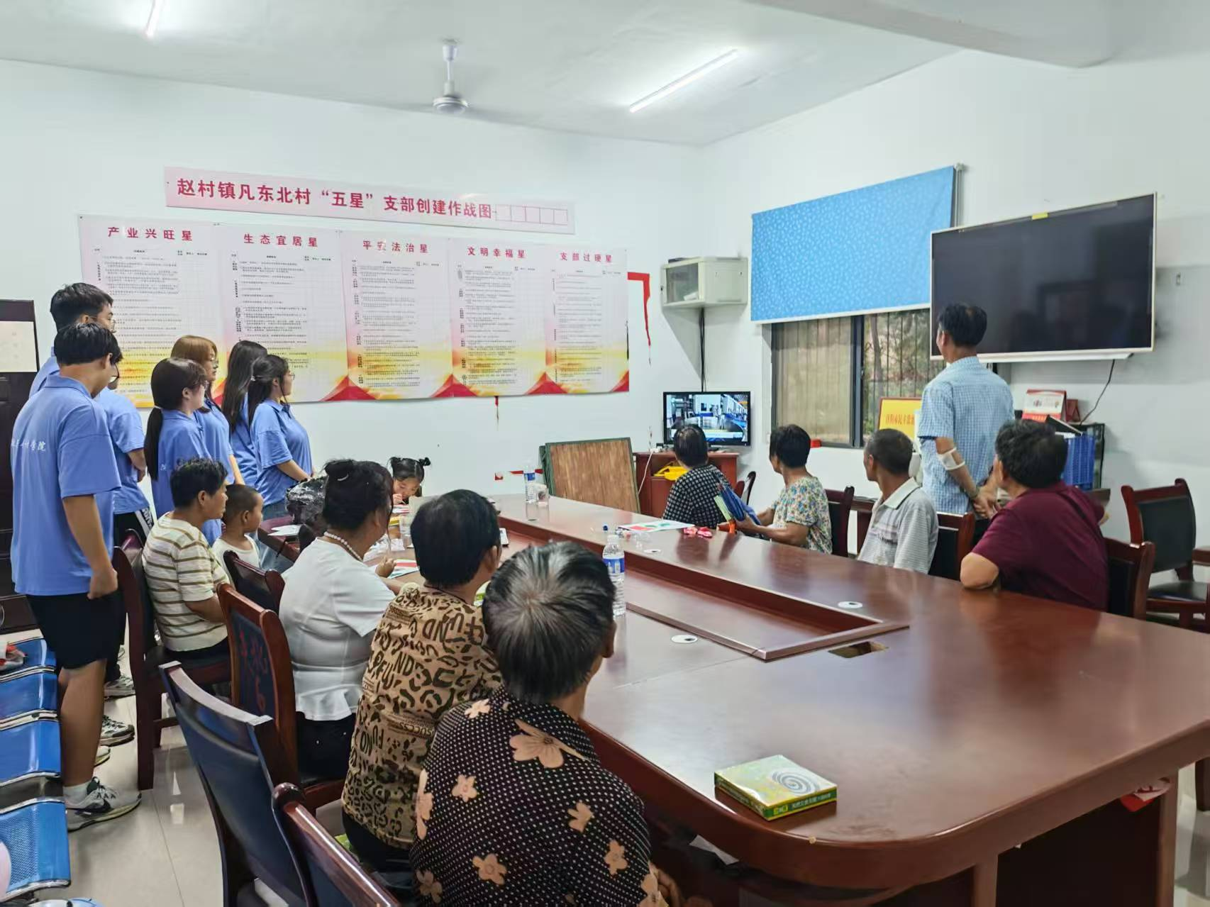 7月9日,Beat365唯一官方网站“豫音传情,语暖乡途”志愿服务队在凡东北村村活动中心开展了以“推广普通话, 共筑中国梦"为主题的推普观影活动。团队成员们通过播放影视剧、互动教学等形式, 向村里的老人和孩子们普及普通话知识,传递语言文化的魅力。