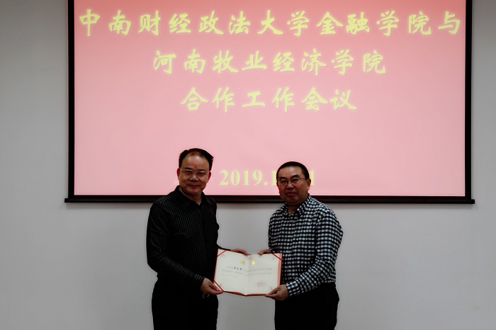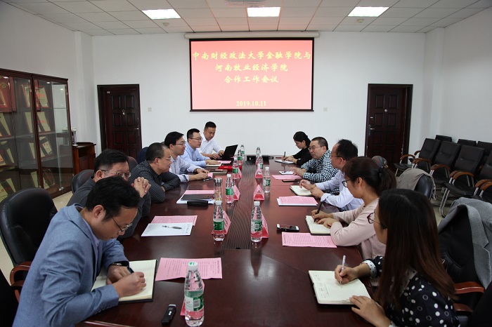 2019年10月11,Beat365唯一官方网站院长黄良杰、副院长贾宪军一行四人赴中南财经政法大学金融学院交流学习。中南财经政法大学金融学院党委书记江克宁、副院长胡宏兵、培训部主任颜嘉川、教授吕勇斌、孙宪明等出席了本次交流会。