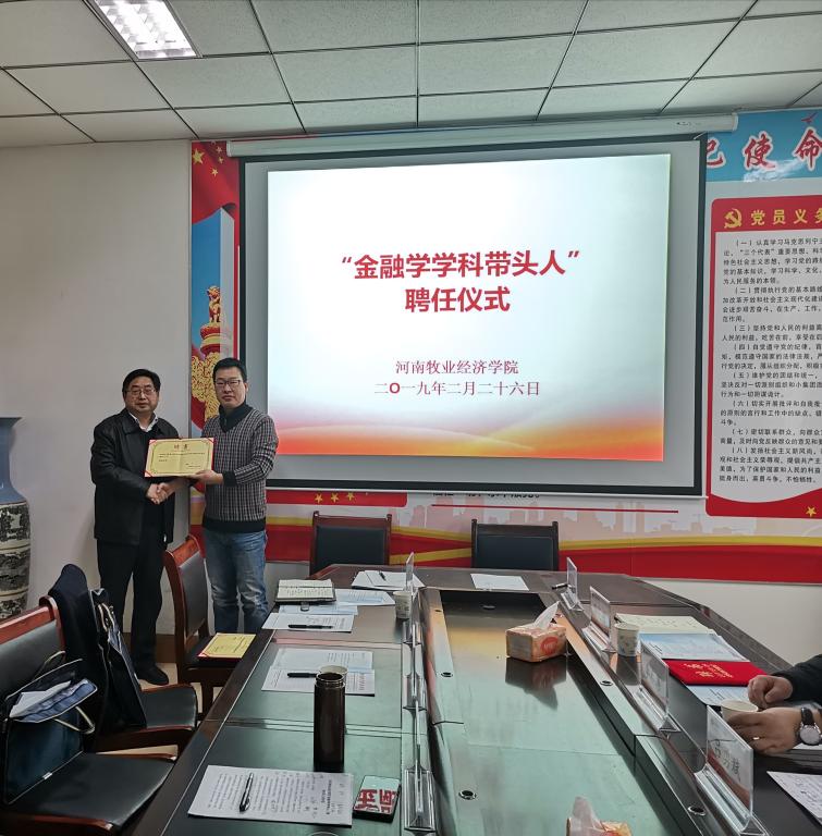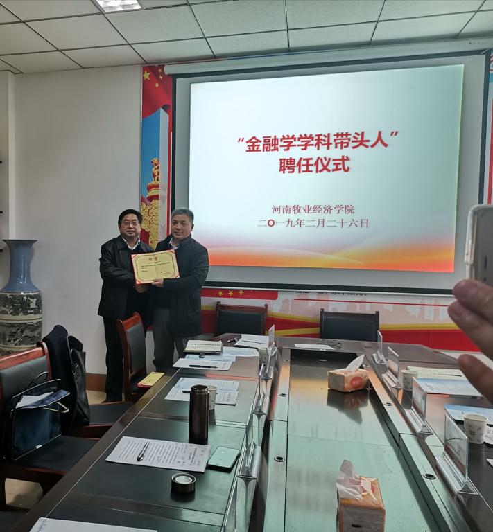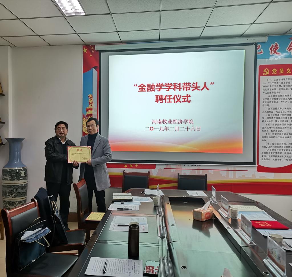 李春涛教授代表受聘专家发言,他很高兴被我校聘任为金融学学科带头人,愿意为河南牧业经济学院的发展做出贡献;他指出,作为高校教师要有学术上的追求,金融学学科带头人团队将深入开展畜牧业与金融行业的交叉性课题研究,形成跨学科的研究团队,提升学科建设、人才培养水平和在全国的影响力,为学校申报硕士点夯实基础。