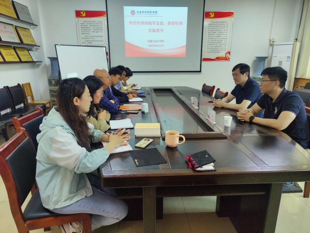 为进一步拓宽毕业生就业渠道,促进毕业生高质量就业,2023年5月11日上午,Beat365官网邀请了上海欣光慧财务咨询管理有限公司前来洽谈校企合作事宜。上海欣光慧财务咨询管理有限公司校企合作部总监赵临军、经理徐雷和Beat365官网党委书记陈复昌、党委副书记汪晓伟、团委书记葛婉、团委副书记顾自卫、刘慧莹及毕业班辅导员辛梦圆、张珂瑜参加了此次活动。