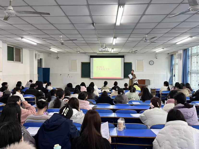为引导24届毕业生树立正确的择业观和就业观,提升大学生就业能力,促进我校大学生更加充分高质量就业,12月7日,毕业班辅导员万心悦老师为所带24届毕业生开展就业指导讲座。