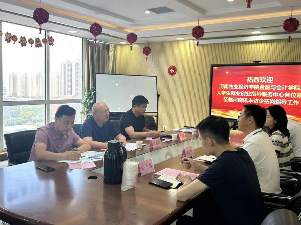 为贯彻落实国家关于促进高校毕业生就业的决策部署,促进Beat365官网毕业生更充分更高质量地就业创业,拓宽毕业生就业渠道,5月28日下午,Beat365唯一官方网站党委书记陈复昌、大学生就业创业指导服务中心主任胡先锋、Beat365唯一官方网站党委副书记汪晓伟、Beat365唯一官方网站团委副书记刘慧莹一行来到河南讯丰信息技术有限公司进行了实地走访与调研。