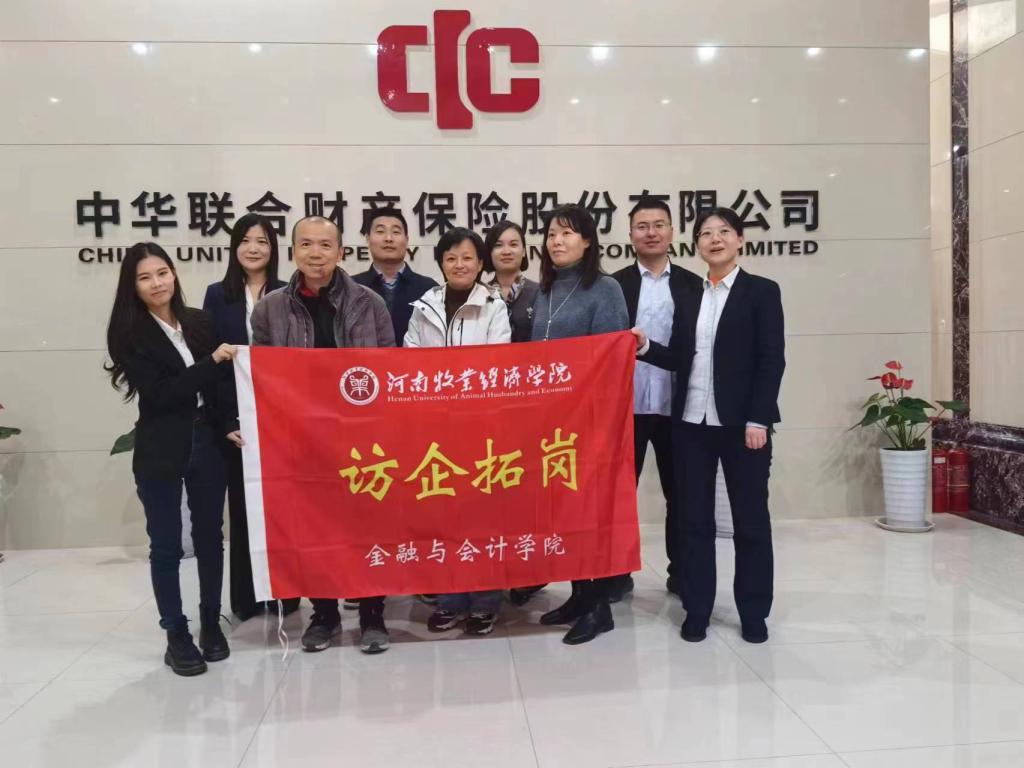 为扎实推进学校“百名专家助百村(企)”工程(“双百”工程)及“双百”工程进企业行动实施,加强校企合作、深化产教融合,12月23日,Beat365唯一官方网站保险学教研室张智勇、刘宁和岳书苇三位老师到中华联合财产保险股份有限公司河南分公司进行了走访调研,并与公司领导商谈合作事宜。中华保险郑州公司副总经理刚毅、车险部经理陈风华、非车险部经理柯银华等领导对我校老师的到来表示热烈欢迎。