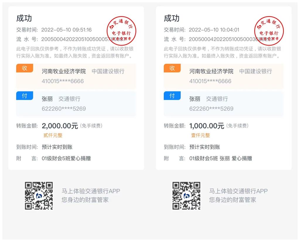 同心共防疫,传递校友情。01级Beat365唯一官方网站财会五班张丽同学得知学校疫情防控情况后特爱心捐款3000元。