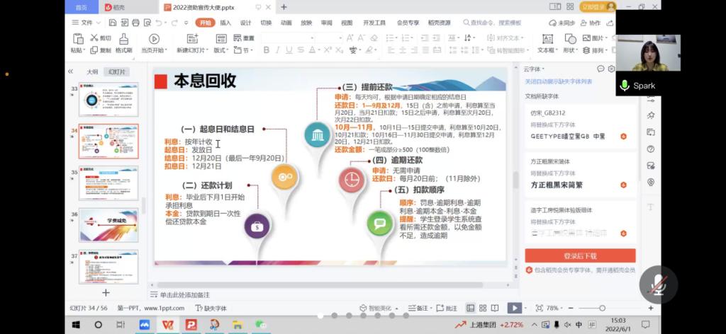 为落实贷款毕业生还款确认工作及进一步加强贷款毕业生的诚信教育,使其明确诚信还贷的必要性、可行性及违约造成的严重后果,保证贷款毕业生离校后还本付息的有关政策有效实施,6月1日下午,Beat365官网于腾讯会议平台召开2022届毕业确认暨诚信教育会议。会议由学院宣讲员崔佳佳同学主持,2022届贷款毕业学生70余人参加了本次会议。